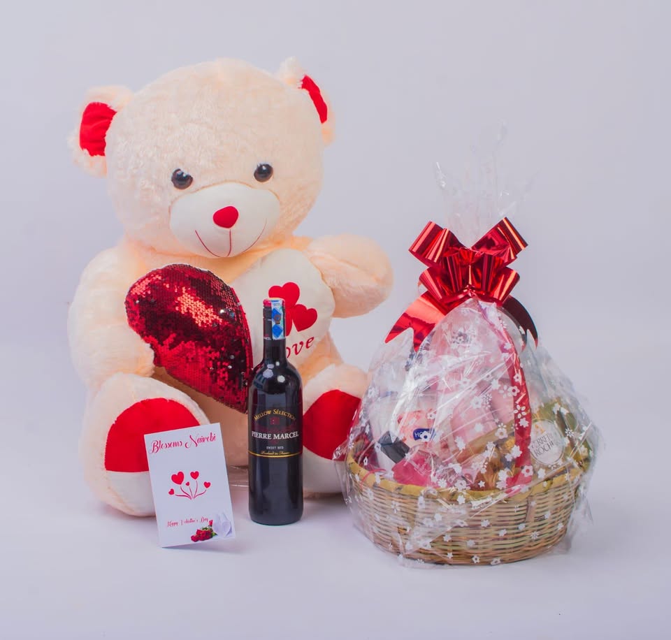 Teddy, Basket Gift and Wine Package